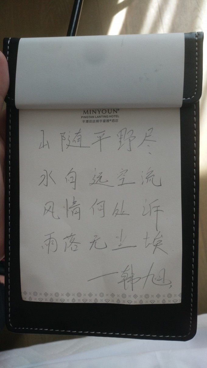 二〇二〇柒月五日平潭感念 2020-07-05 21:28 2020.7.5号小组团建,去福建平谭游玩,在最后一天中午,阳光甚好,我在酒店等着回去,透过窗户看着远方的山与树木,忽觉此地像极了世外桃源,宁静悠远,也许与我当时的心情有关,遂作此文。 山随平野尽, 水向远空流。 风情何处诉, 雨落无尘埃。  --END--
